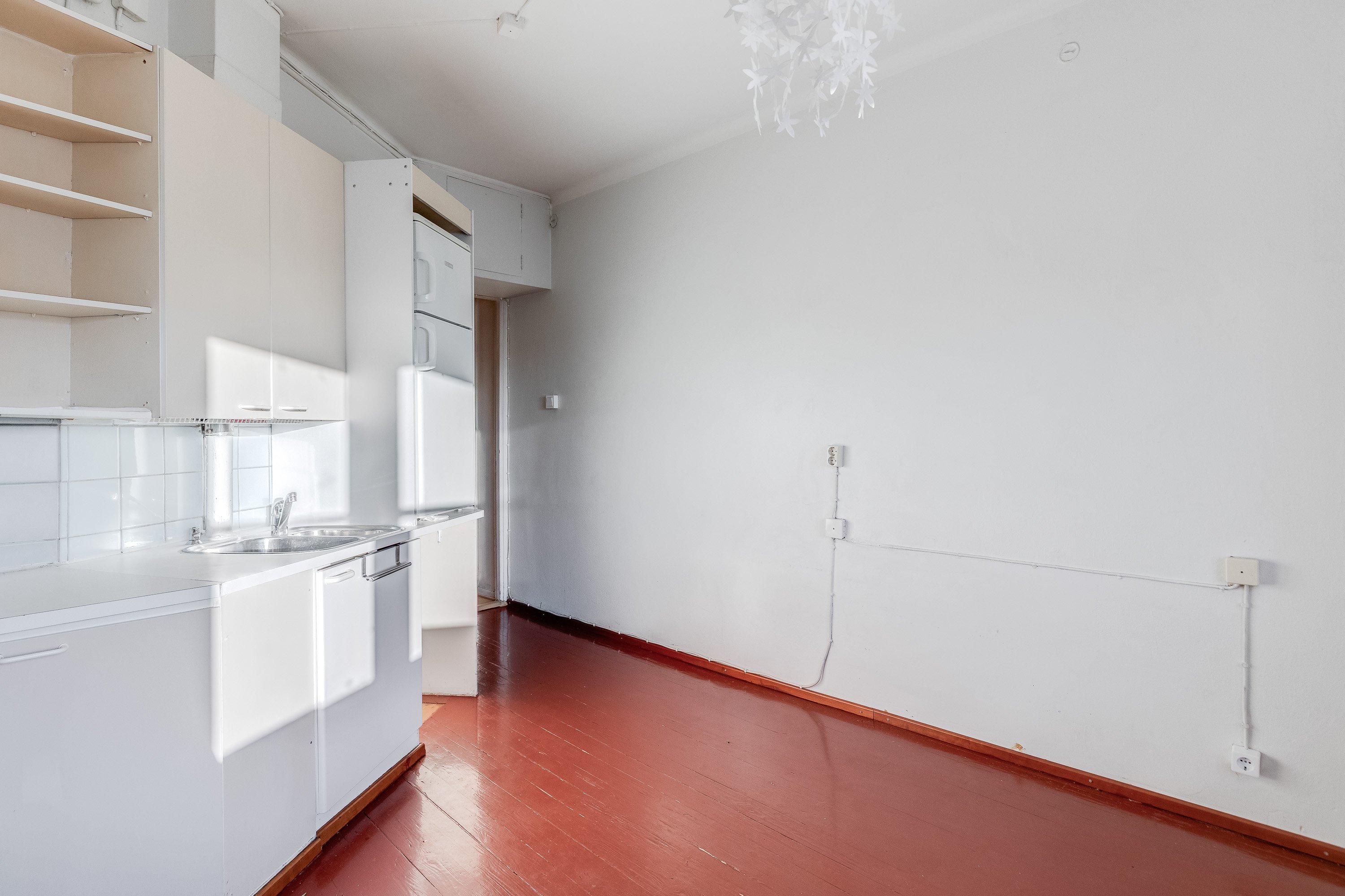 Asunto on remontoitavassa kunnossa, joten pääset toteuttamaan omia visioitasi ja tekemään siitä juuri sinun näköisesi. Huoneistossa on tilava olohuone, jossa on parkettilattia, sekä keittiö, joka kaipaa päivitystä. Kylpyhuoneessa on kaikki tarvittavat varustelut, kuten kylpyamme ja pesukoneliitäntä.
