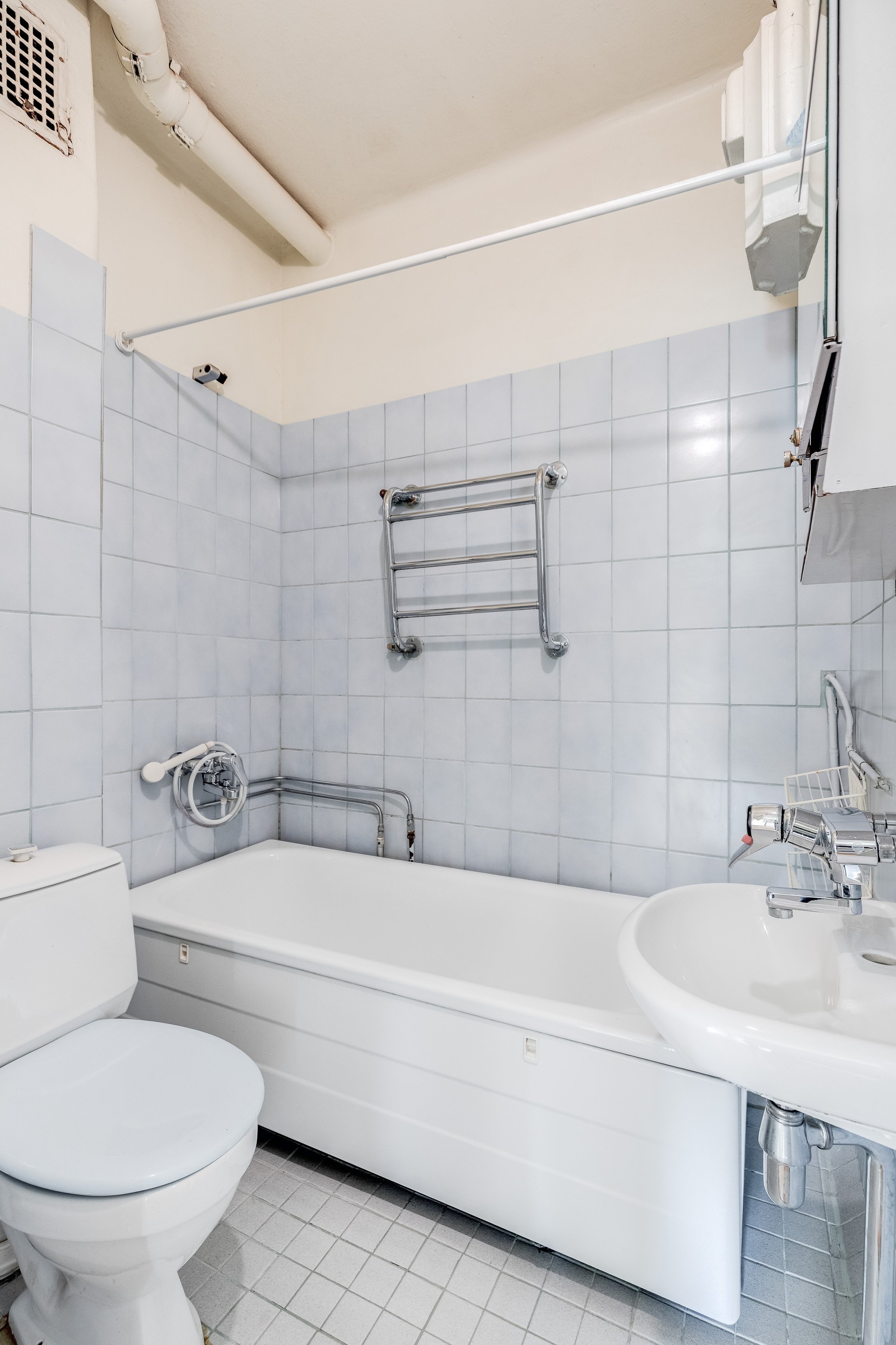 WC-istuin, kylpyamme, suihku, pesuallas ja pesukoneliitäntä