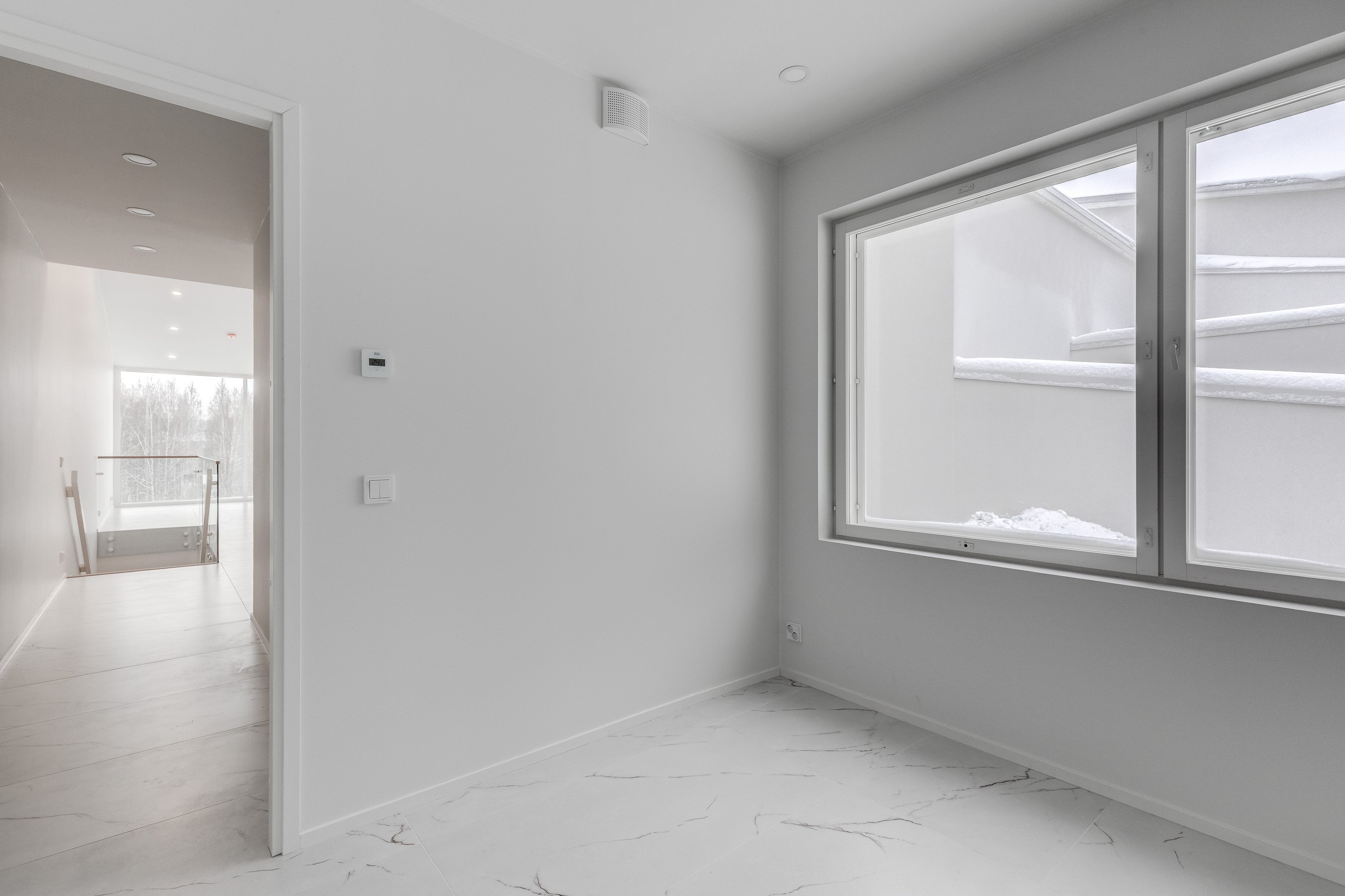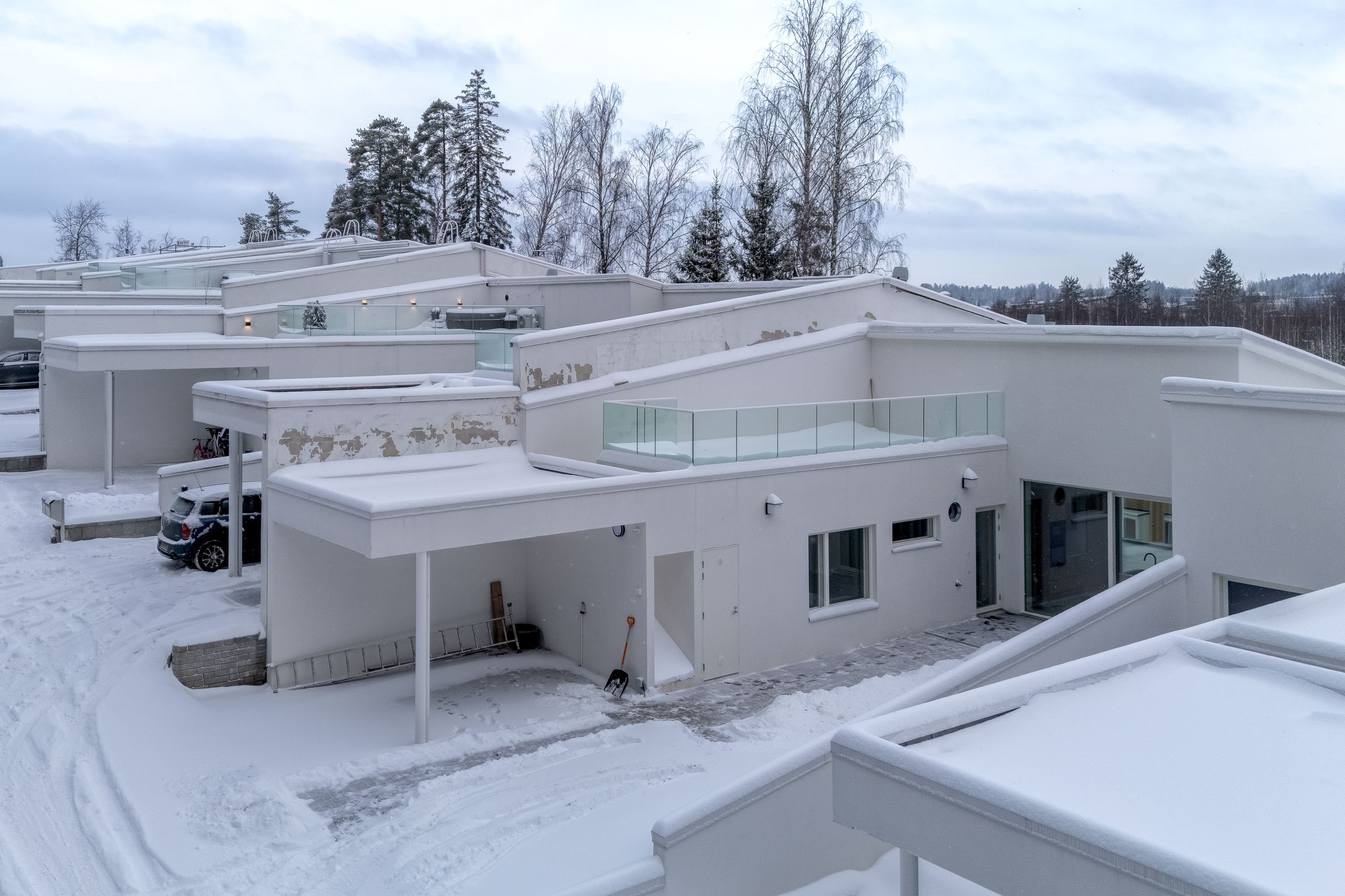 Espoon Henttaassa odottaa upea uusi koti, joka tarjoaa modernia asumismukavuutta ja tilaa koko perheelle! Tämä kahdessa kerroksessa sijaitseva koti on valoisa ja ilmava ja sen suuret ikkunat tulvivat luonnonvaloa sisään. Lattiasta kattoon olevista ikkunoista on upea näkymä sillä huoneisto sijaitsee rinteessä. Lämmitysjärjestelmänä maalämpö vesikiertoisella lattialämmityksellä. Terassinpuoleiset ikkunat ovat lasiliukuovet, joten kesällä voit avartaa oleskelutilaa mukavasti myös terassille. Upea kattoterassi lasikaiteineen lisää asumismukavuutta. Piha on helppohoitoinen ja sieltä löytyy pieni viheraluekin istutuksia varten. Autokatos sisäänkäynnin vieressä, jossa latausvalmius jopa kahdelle autolle.