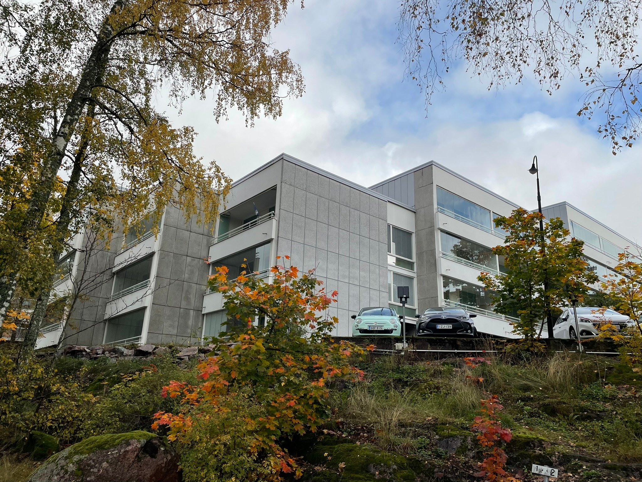 Bussipysäkki lähellä, metroasema lähellä, sujuvat yhteydet omalla autolla ja hyvät pyöräilytiet