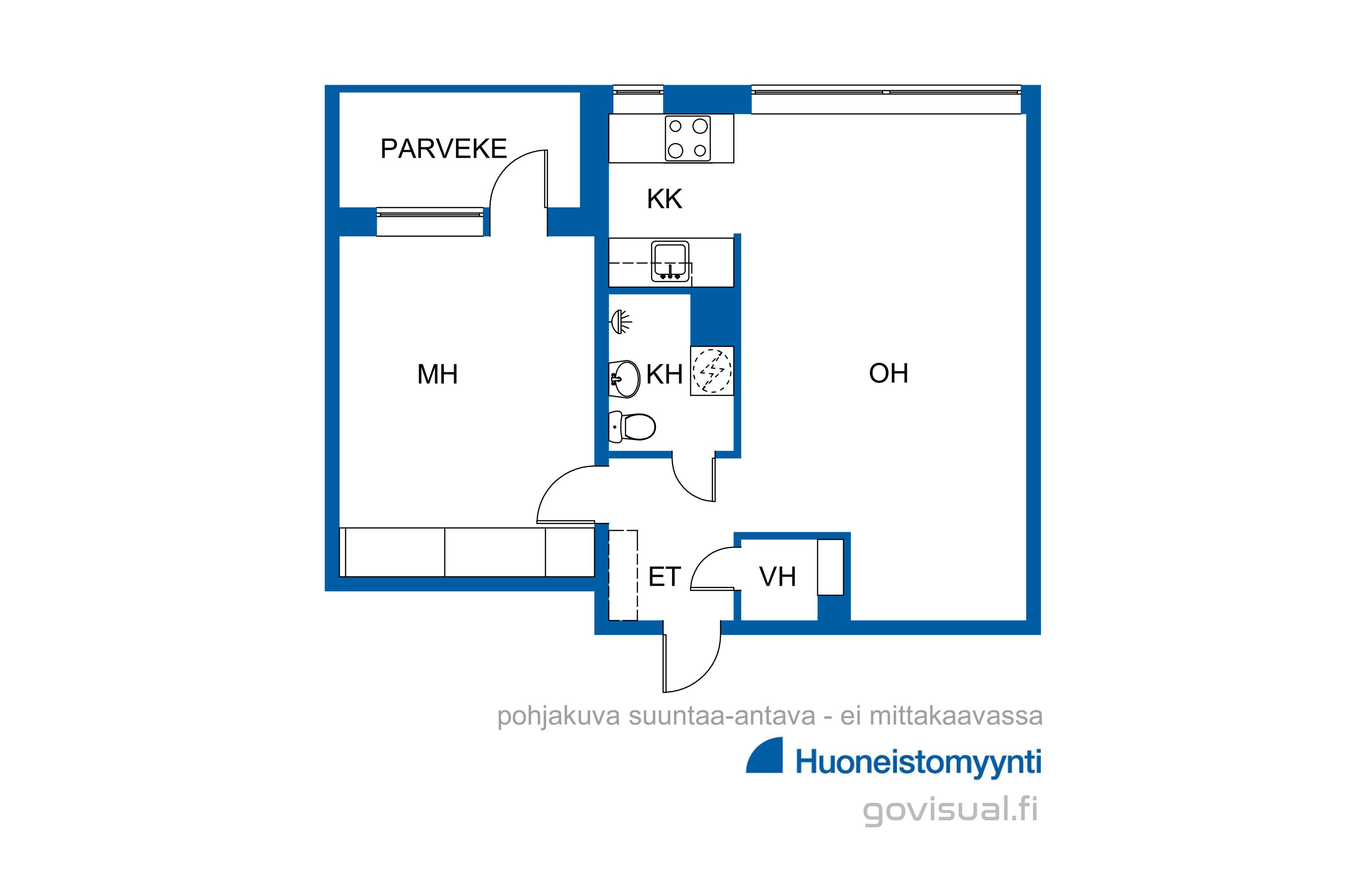 Asunnon pohjaratkaisu on toimiva. Parvekkeella voit nauttia rauhallisista hetkistä ja kauniista näkymistä.