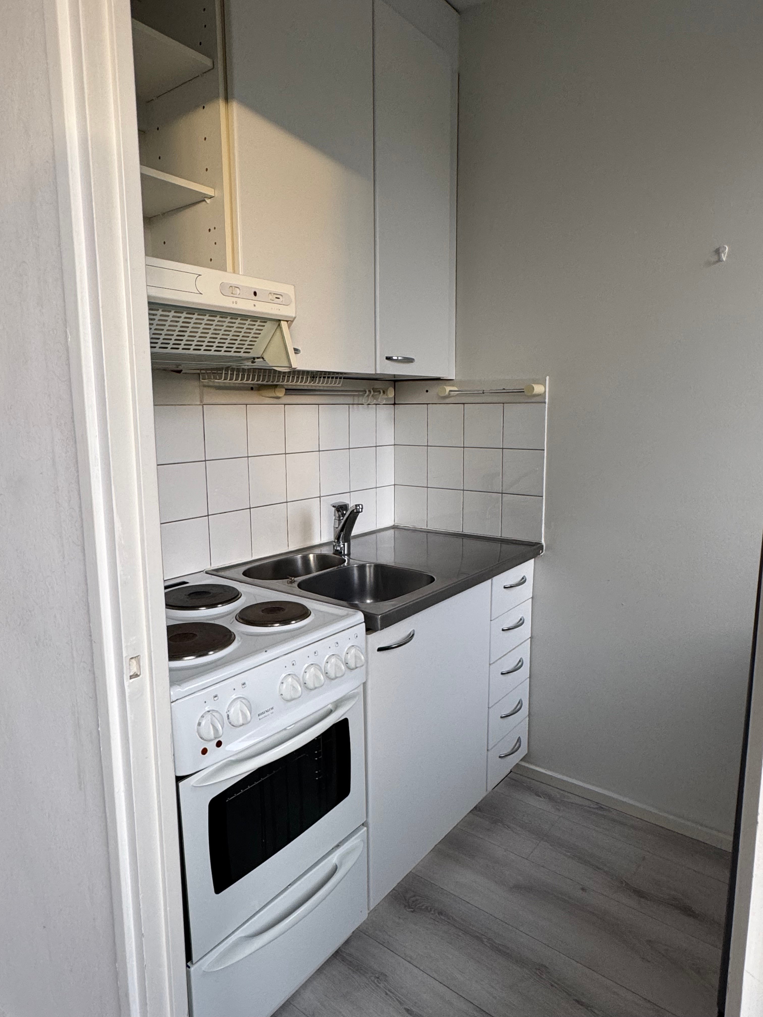 liesi/uuni, liesituuletin, jääkaappi/pakastin, kaapistot.