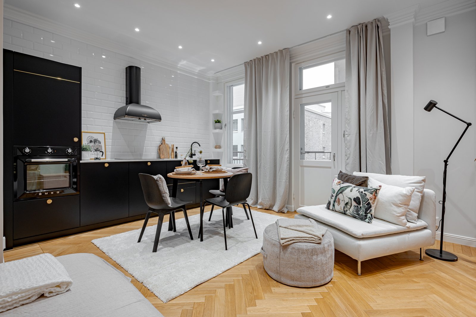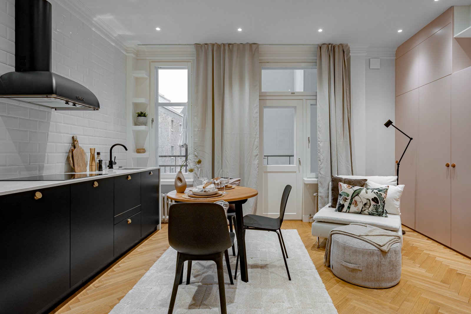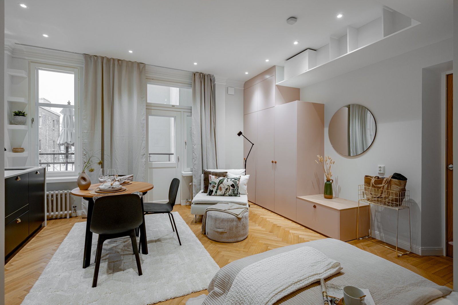 Sisustusarkkitehdin suunnitelman mukaan korkeatasoisesti toteutettu uusi yksiö, missä harkittuja ja