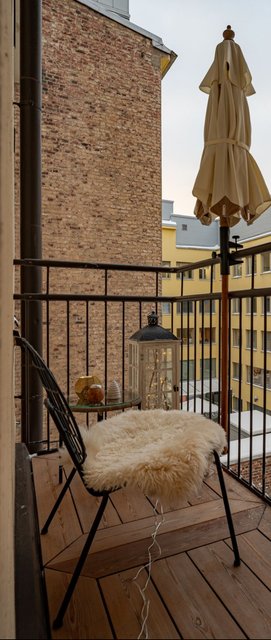 041 440 5467 antti.niinimaki@huoneistomyynti.comTanskalaiseen tyylisuuntaan viimeistelty uniikki parvekkeellinen keskustakoti